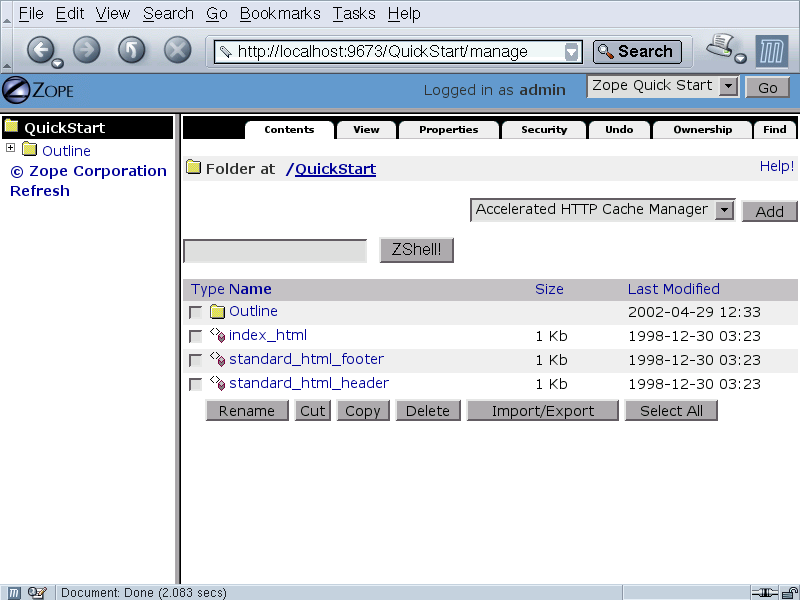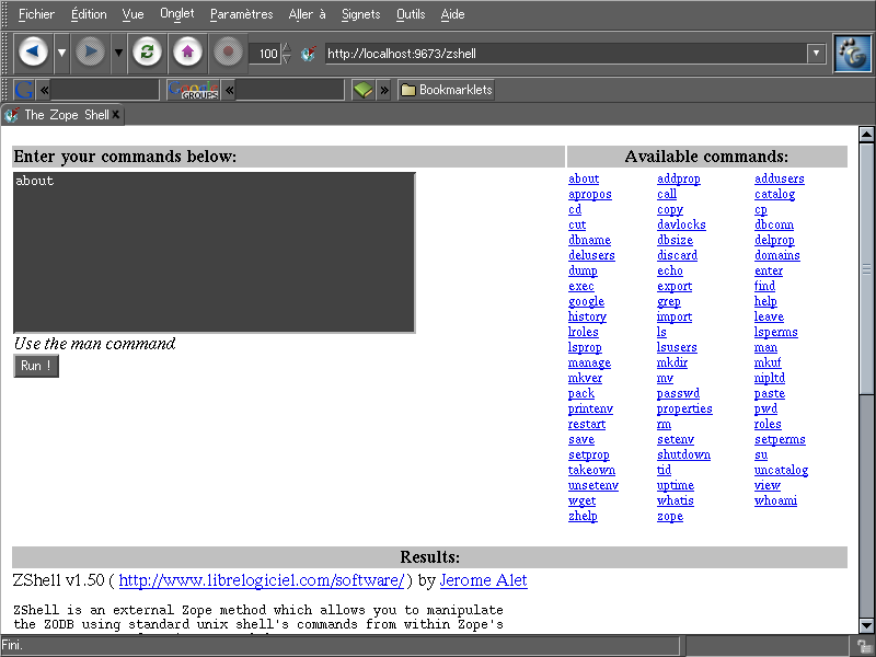 ZShell integration into the Zope's Management Interface: